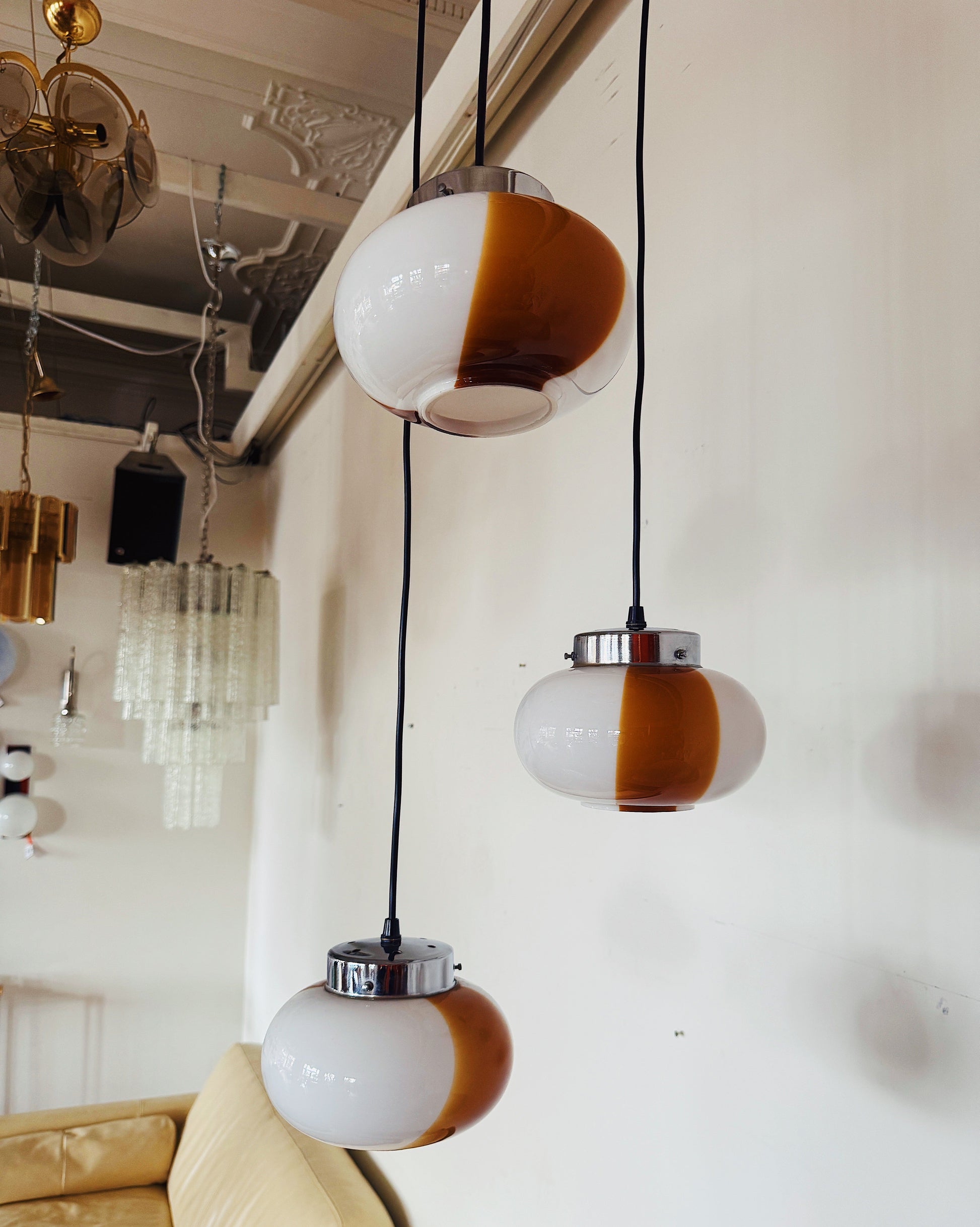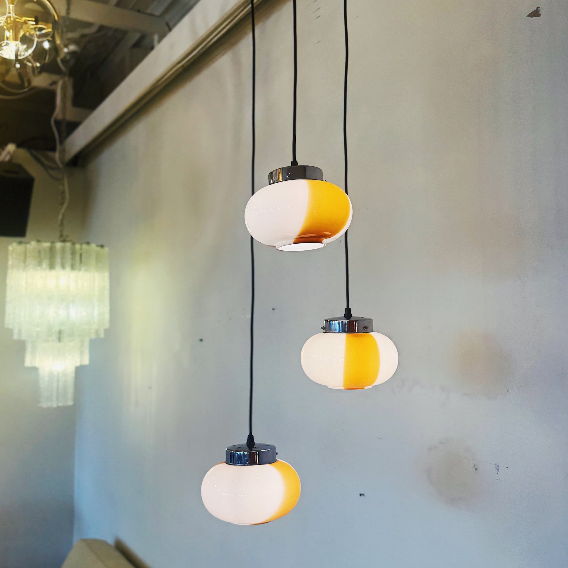 1970s VINTAGE / Amber Swirl 3-Tier Cascading Pendant