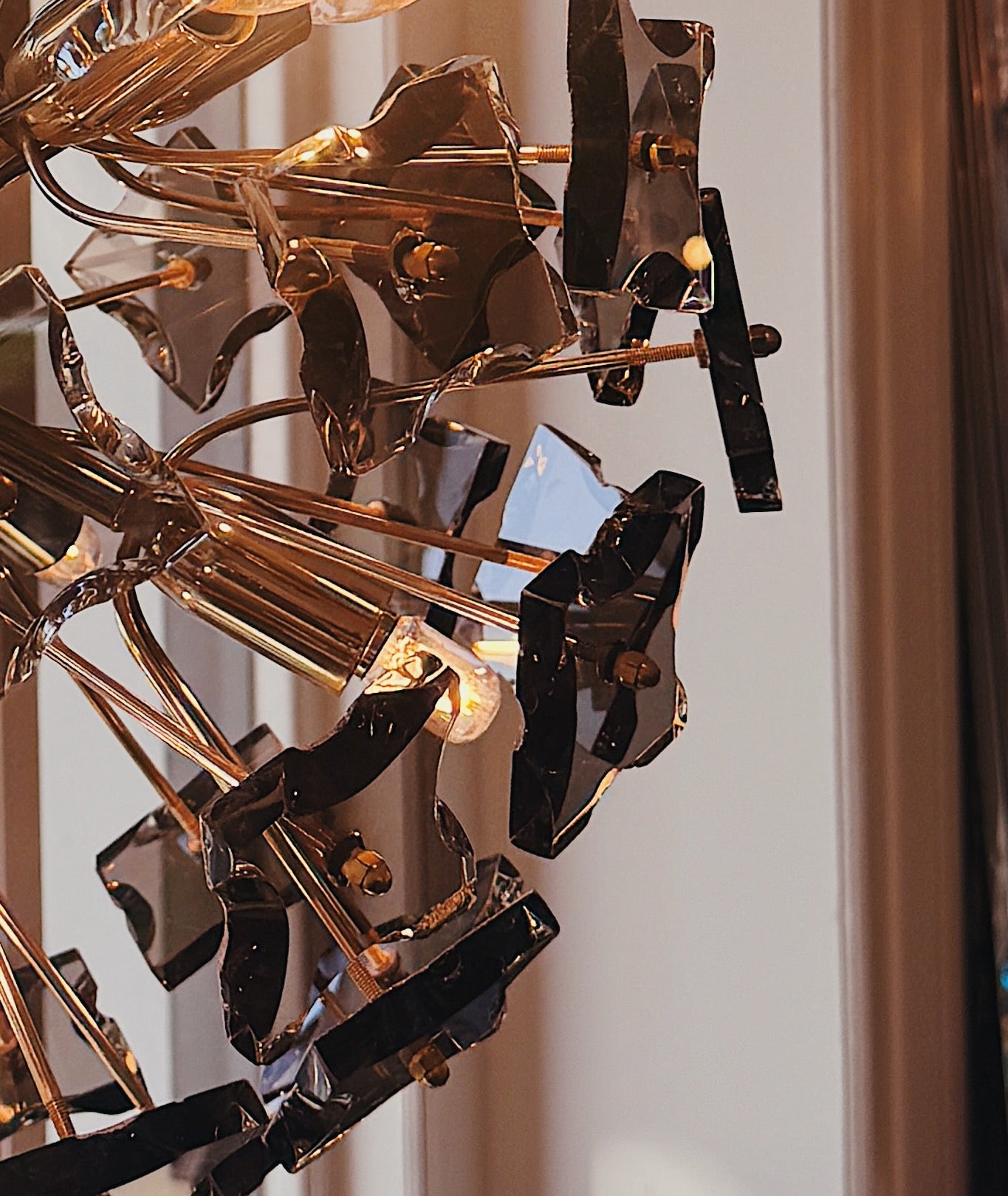 FONTANA ARTE / Vintage 1970s Smoky Glass Sputnik Chandelier