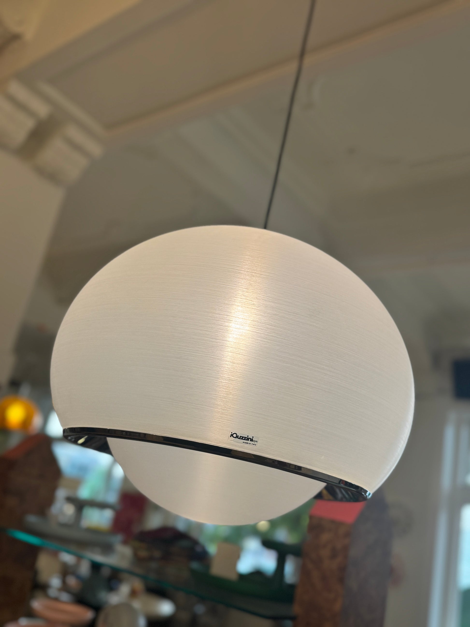 1970s Space Age pendant by iGuzzini. The Bud pendant lamp was designed by Studio 6G design team at Harvey Guzzini, in 1968. It’s considered one of the most collectible mid century lights. These were manufactured in the late 60's or 70's and are the version marked with the IGuzzini sticker and made in Italy and NOT reproductions made under license.