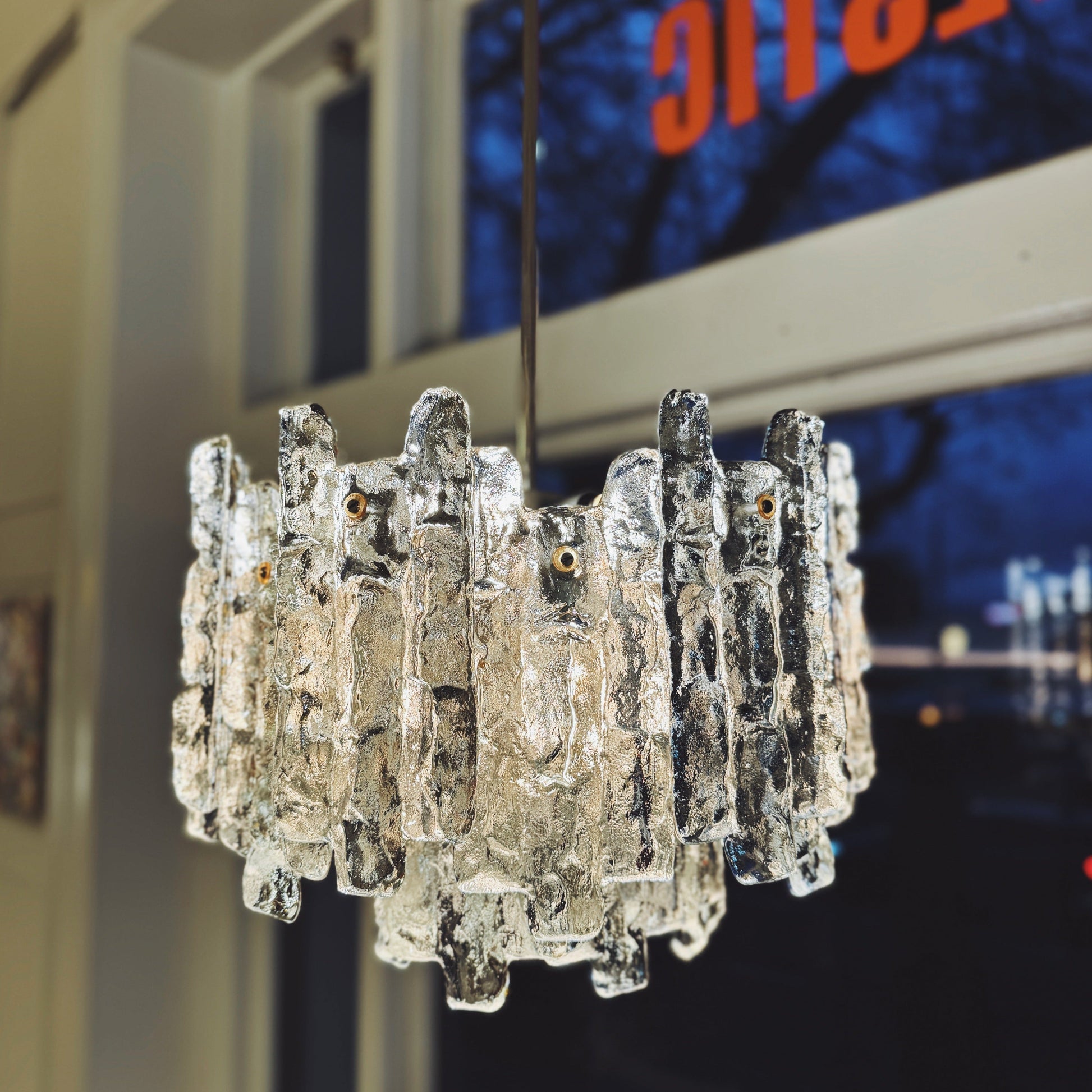 In 1881, Julius August Kalmar founded Kalmar, a Viennese company that produced handcrafted objects of cast bronze. Kalmar developed a fine reputation and exhibited internationally often, but it was Kalmar’s son, Julius Theodor (J.T.) Kalmar, who took over in 1913 and made the company shine with its modernist lighting. The 1960s saw Kalmar’s popularity grow, thanks in part to the success of more decorative pieces like the ice-glass fixtures created with Austrian sculptor Karl Gruber.