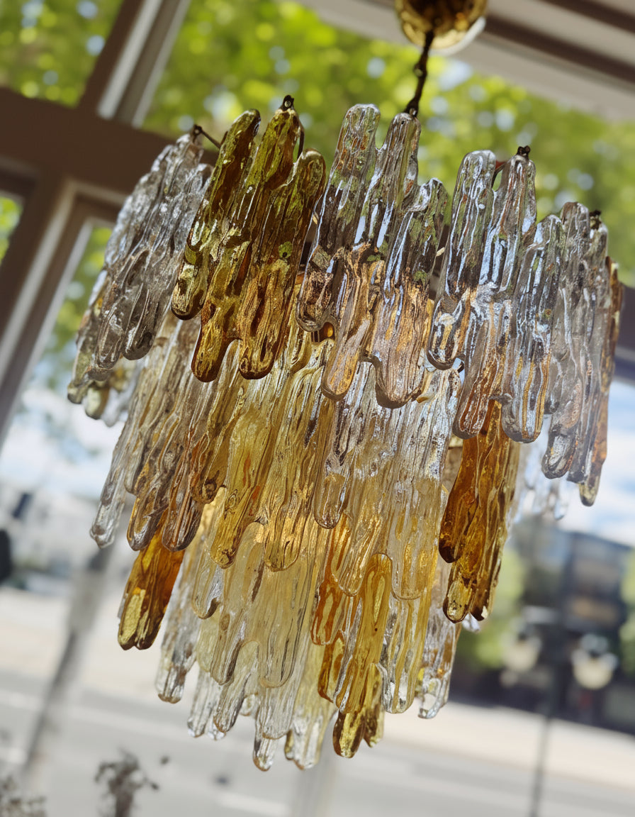 JT KALMAR / 1960s Amber & Clear Icicle Prism Chandelier