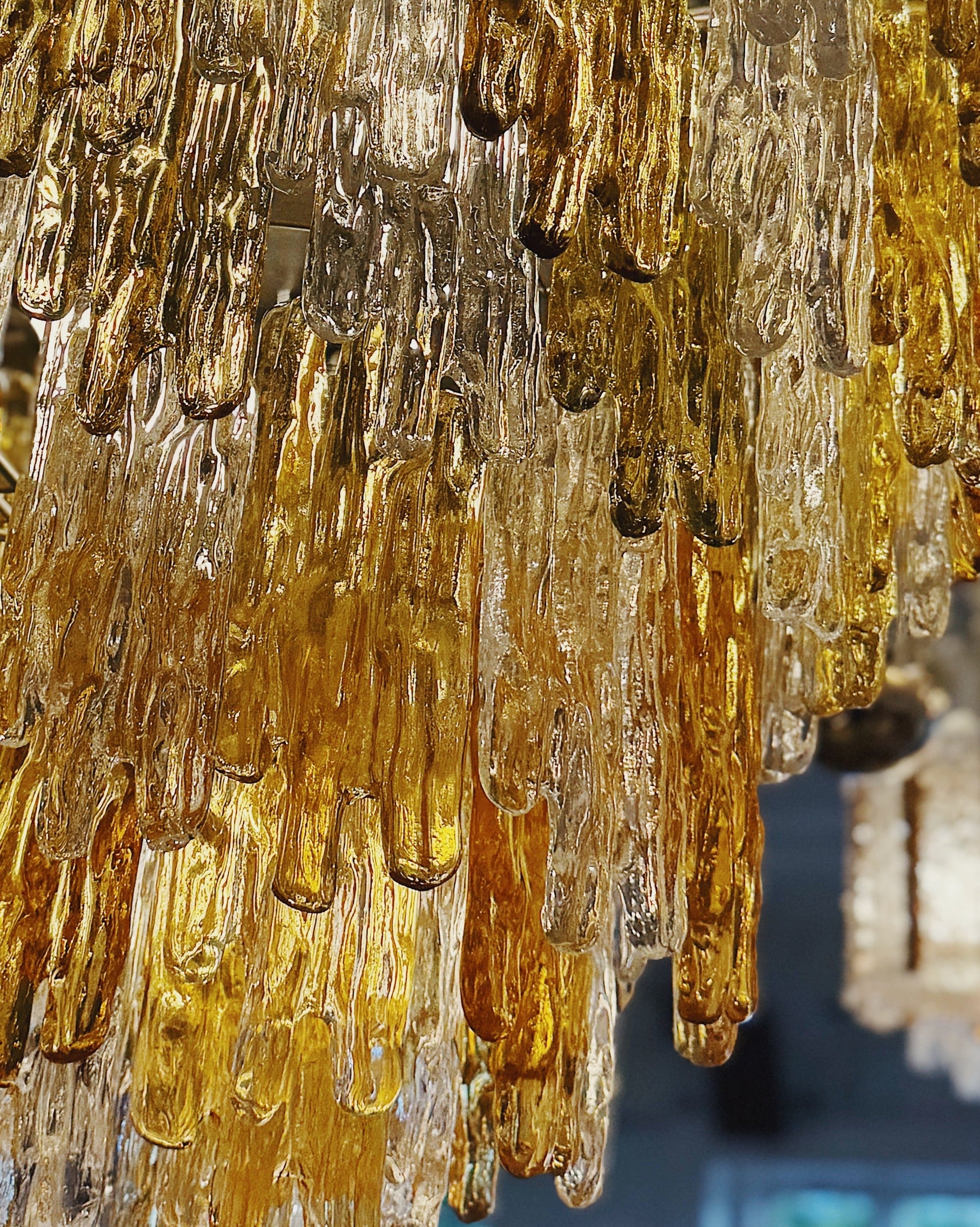 JT KALMAR / 1960s XL Amber & Clear Icicle Prism Chandelier
