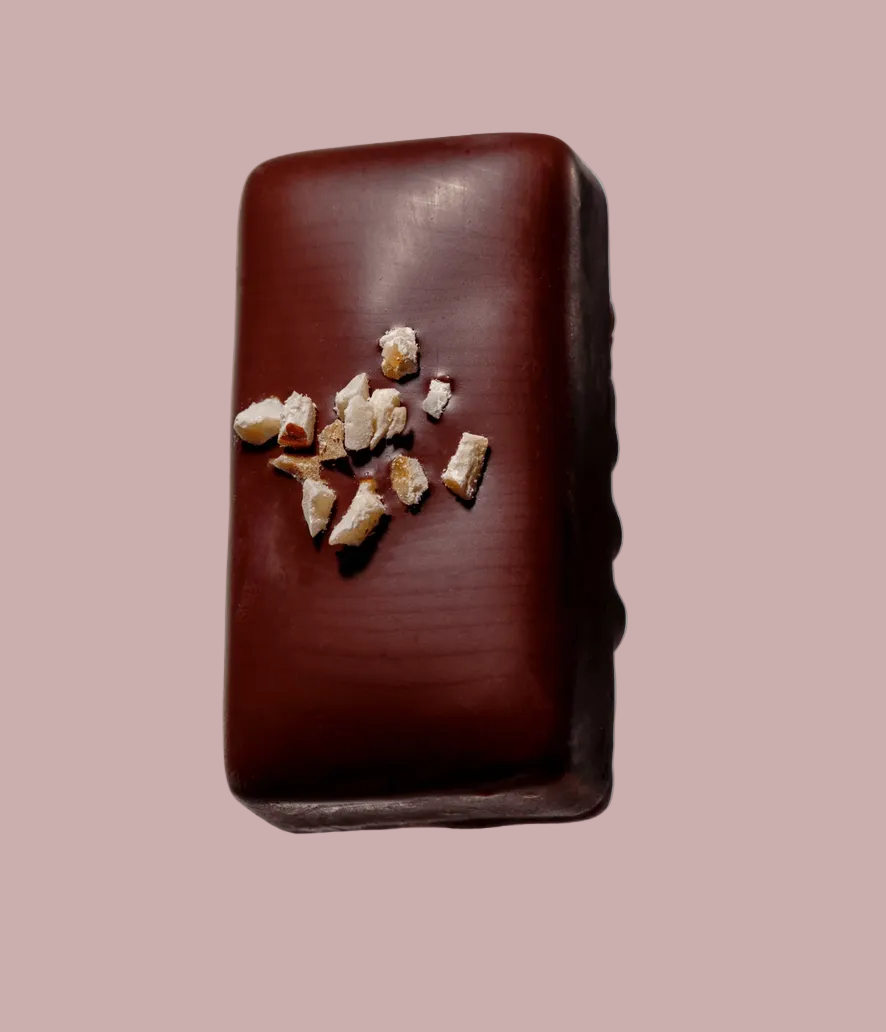 A smooth and freshly ground hazelnut butter center, with a few crunchy surprises. Spiked with Peruvian ginseng aka maca powder, which is known for its adaptogenic qualities and increasing libido. Think Ferrero Rocher without the harmful sugars. Ceremoniously inhale the nutty, cacao-drenched aroma for a sensorial delight.