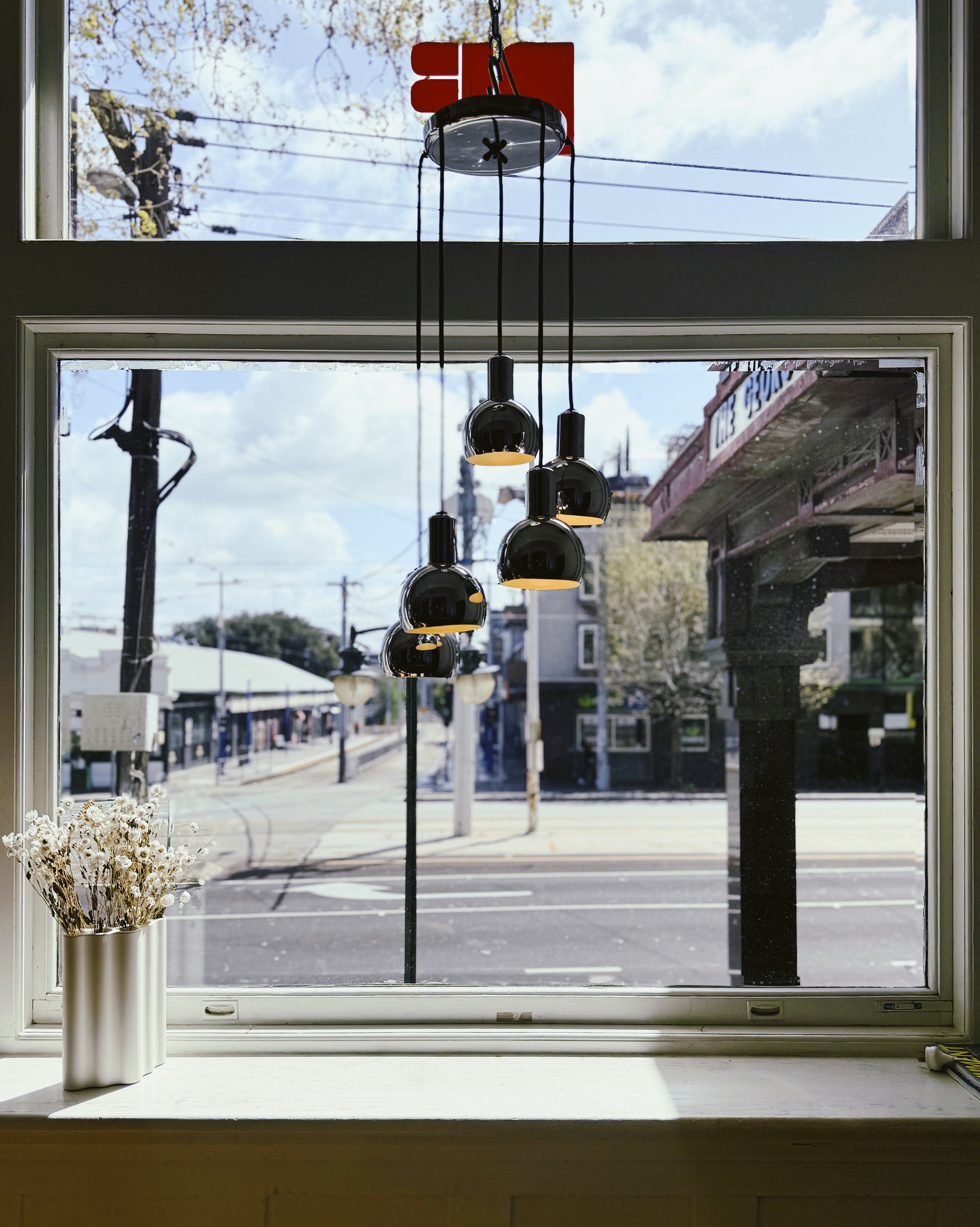 MID CENTURY / Five Drop Chrome Cascading Pendant