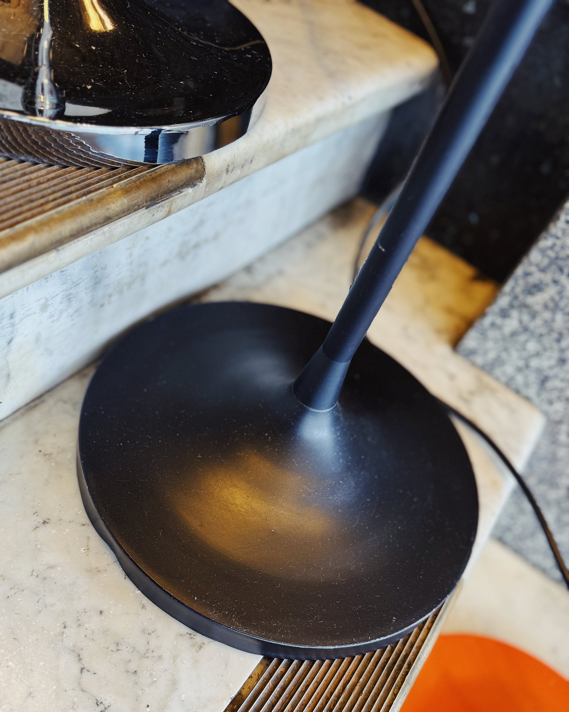 Rare 1960s tulip base Oslo Australia mid century dual head floor lamp. Original markings. Both lamp heads are adjustable to face in all directions and feature individual on/off switches on each lamp head. An iconic Scandinavian design with Australian craftsmanship. Features black cord. In excellent original condition.