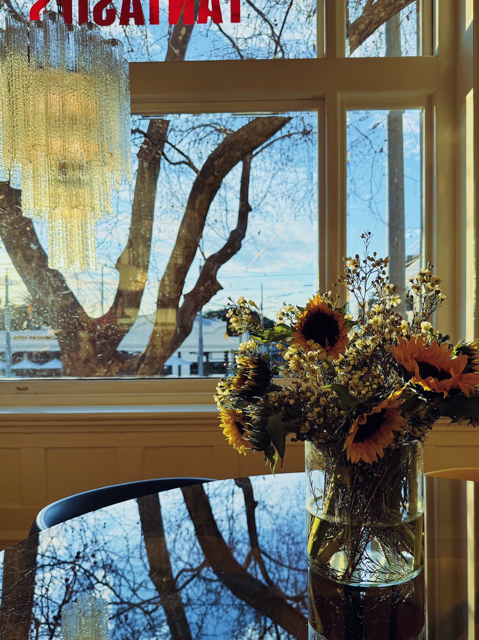 Glass surface has some scratches consistent with age. Pictured here with Kendall Tripod Tub chairs also available.
