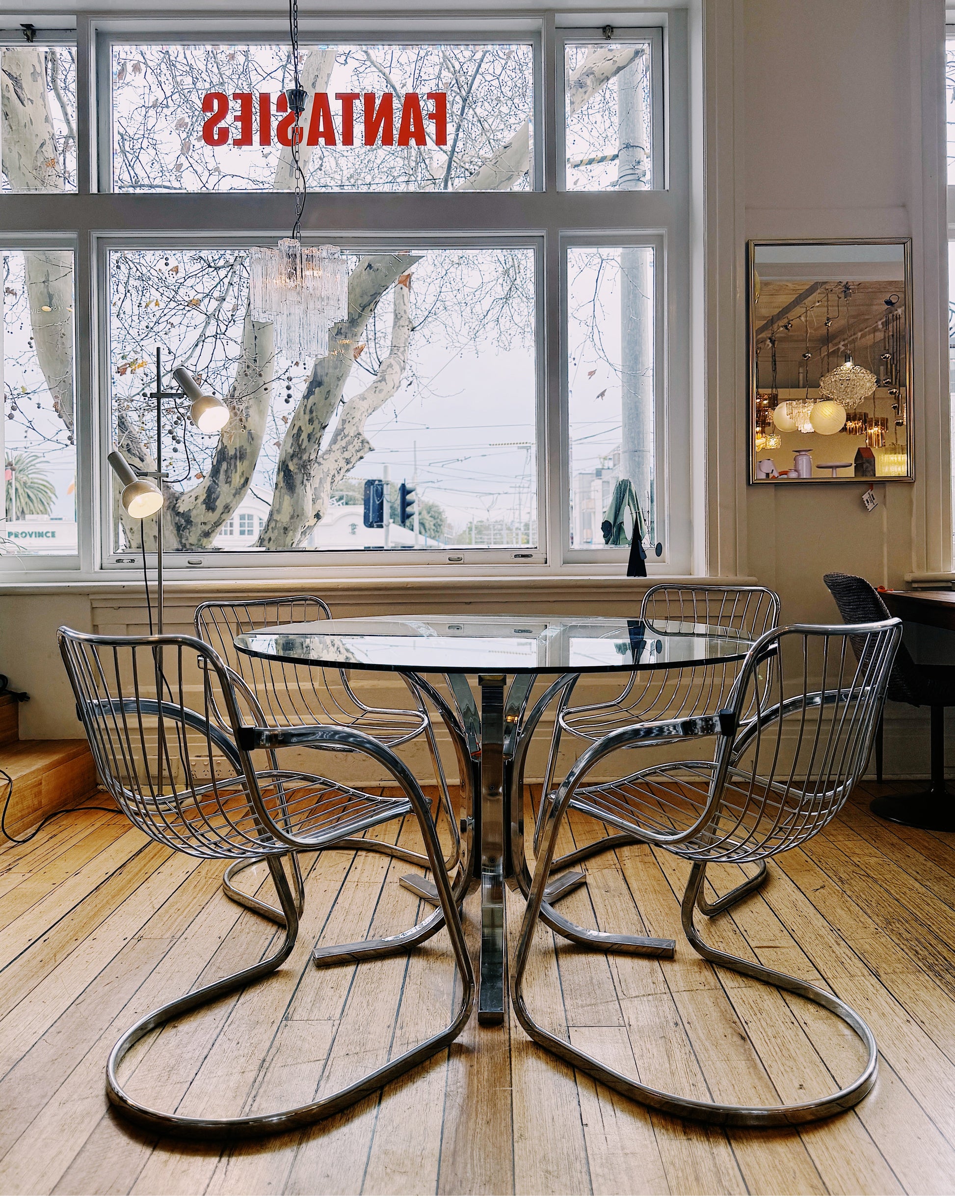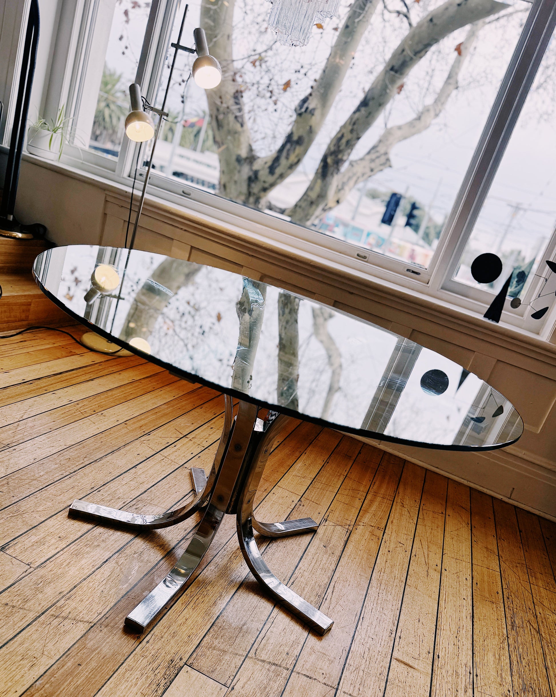 Accompanying chairs sold separately. https://www.domesticfantasies.com/products/space-age-italian-curved-chrome-chairs