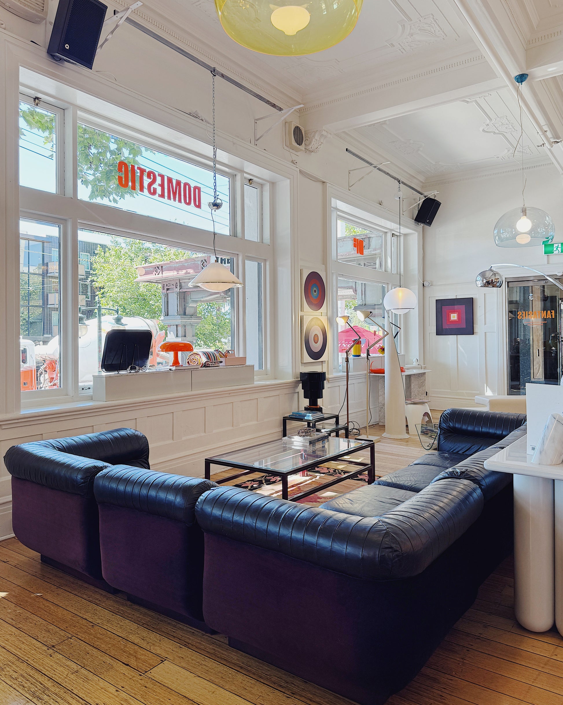 1970’s Modular Sofa in Black Leather + Aubergine velvet By VandeRoza. A very special seven piece modular sofa by VandeRoza has just arrived in the showroom!