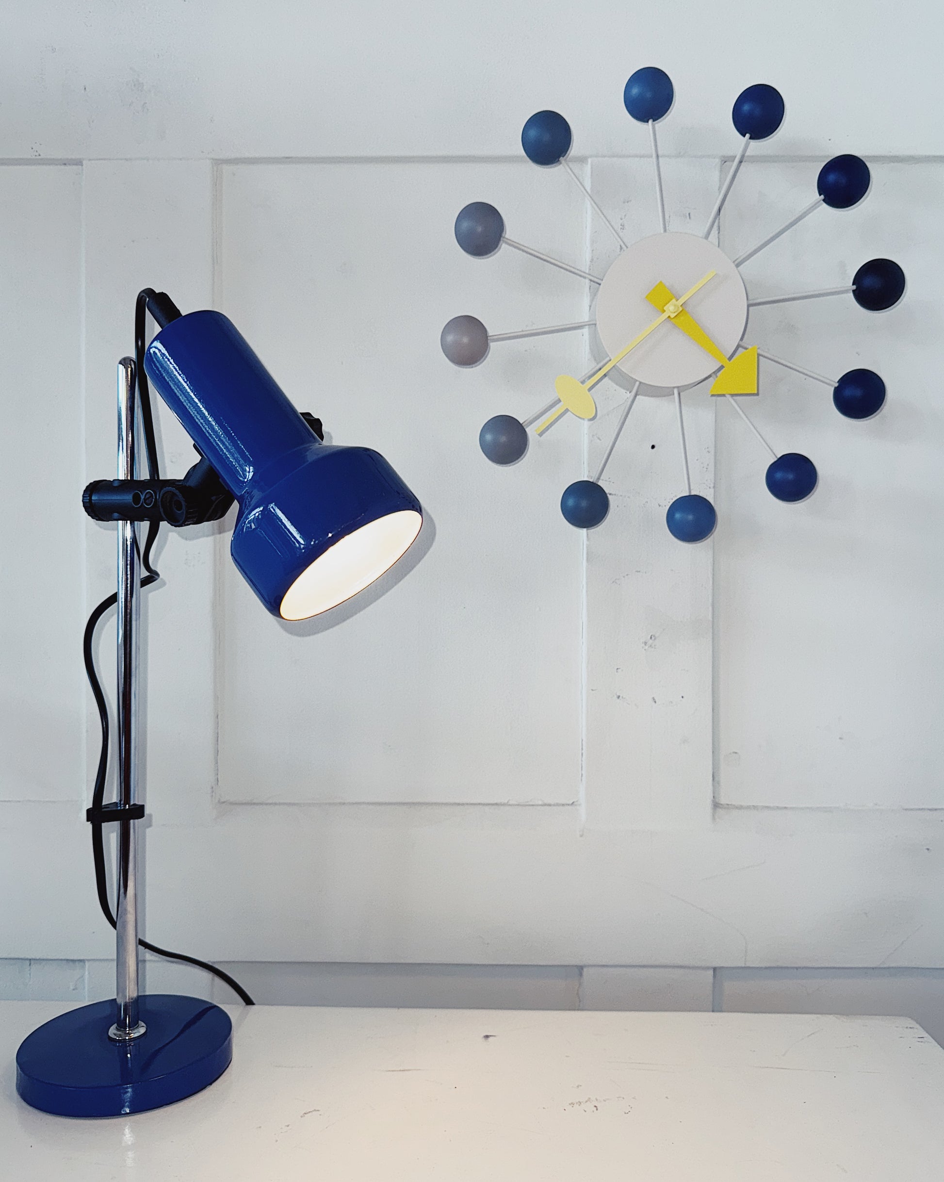 A single head vintage desk lamp refurbished with all original parts in lemon yellow.