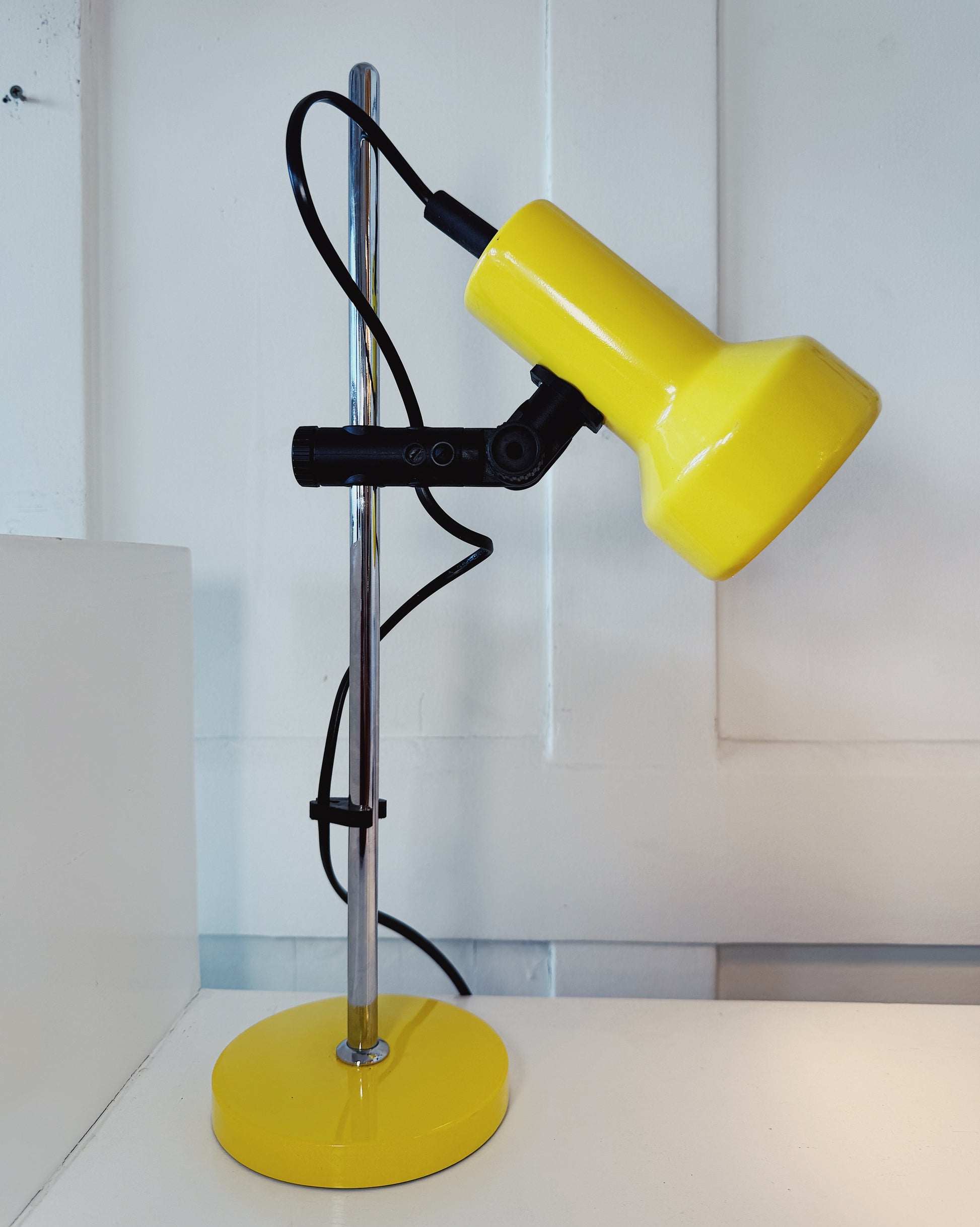 A single head vintage desk lamp refurbished with all original parts in lemon yellow.