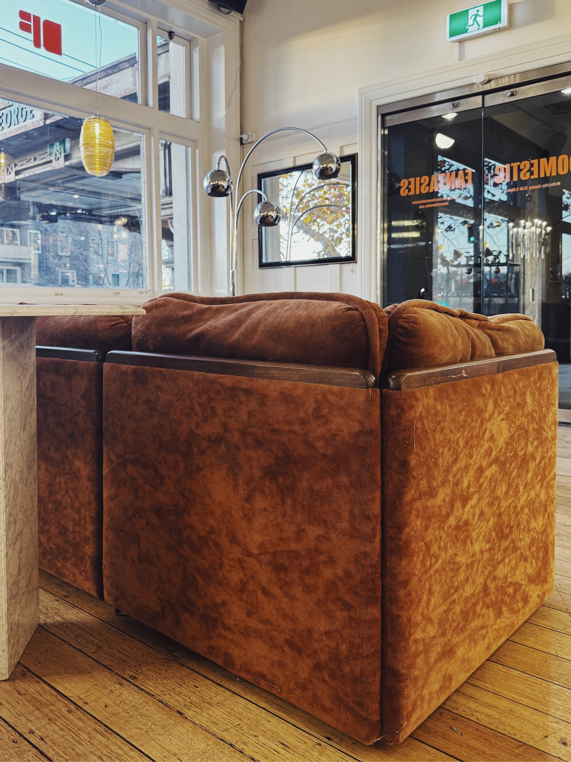 The sofa presents beautifully. It has a couple of fraying points between the edges of the modules which are not visible when the sofa is arranged. The ottoman cushion requires reupholstering and has been excluded in the price.