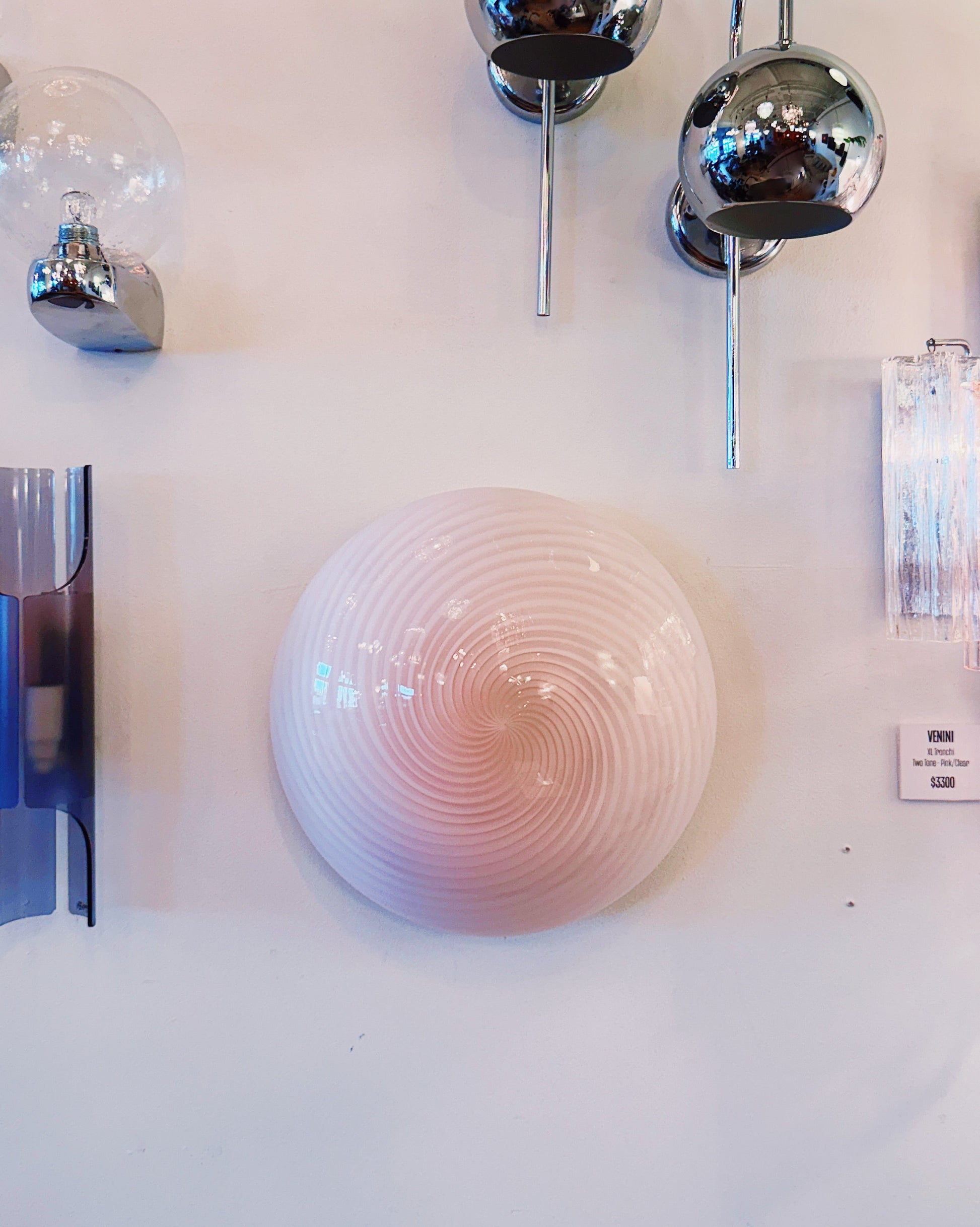VINTAGE / Murano Swirl Bubblegum Pink Ceiling/Wall Light