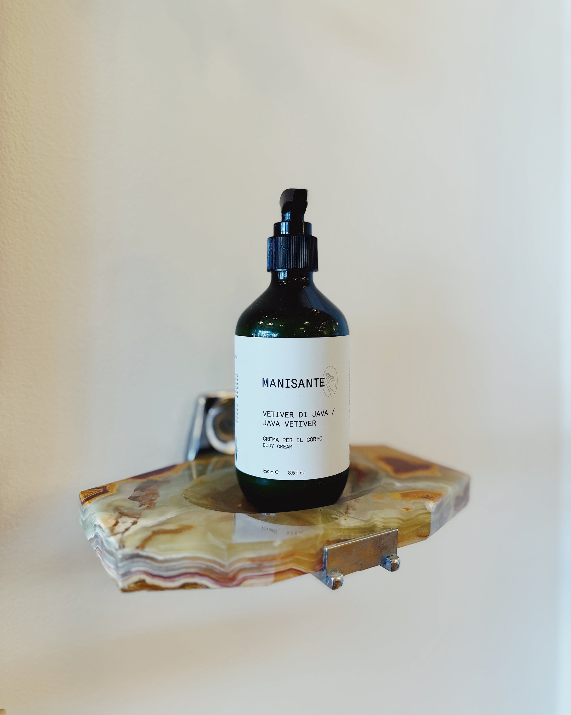 The onyx veins are in shades from green, beige and brown. As a bathroom set the soap dish has available companion pieces such as a mirror, shelf, wall lights, towel holder and toilet roll.