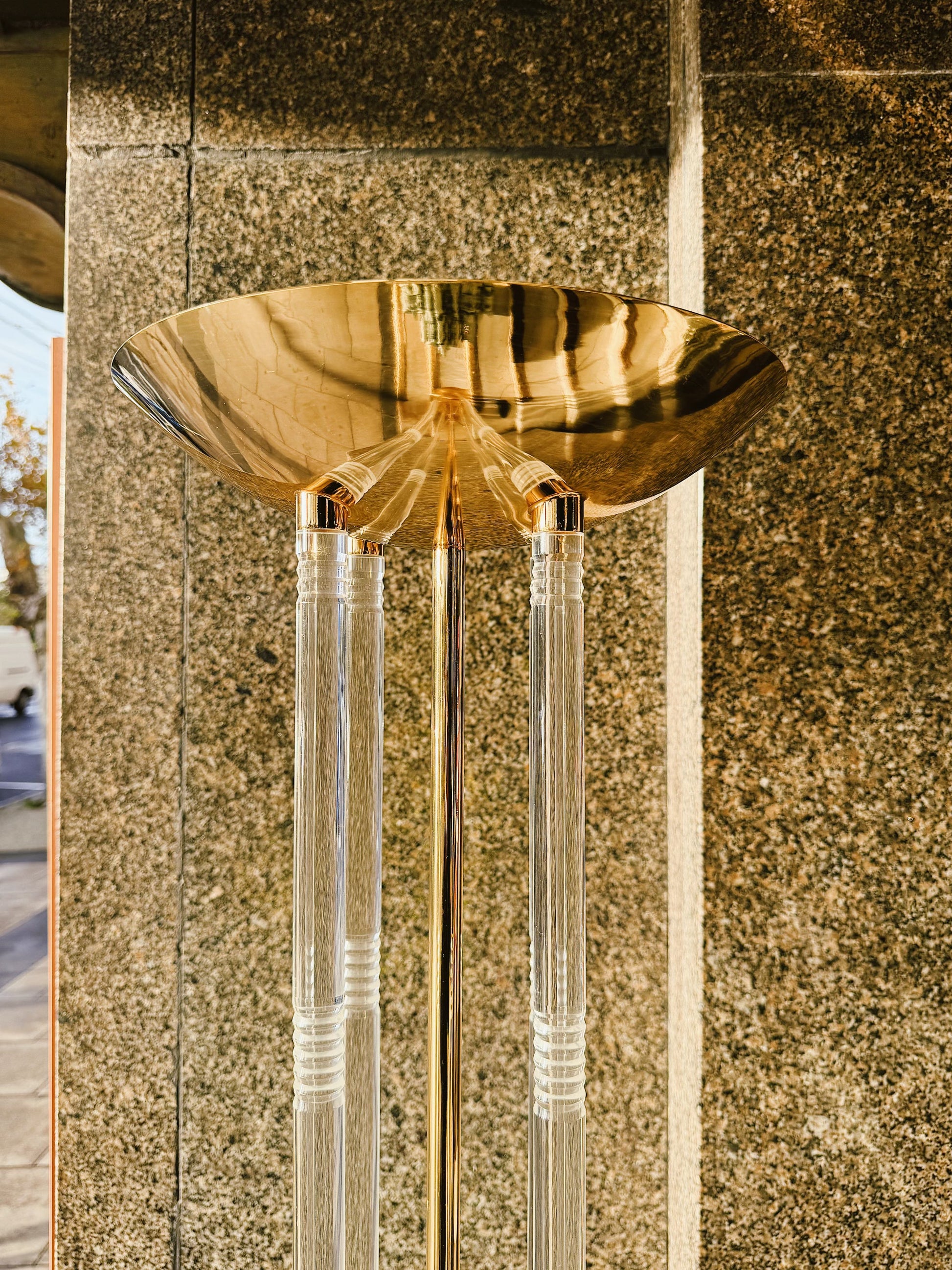 VINTAGE / Post Modern Brass + Lucite Torchier Floor Lamp