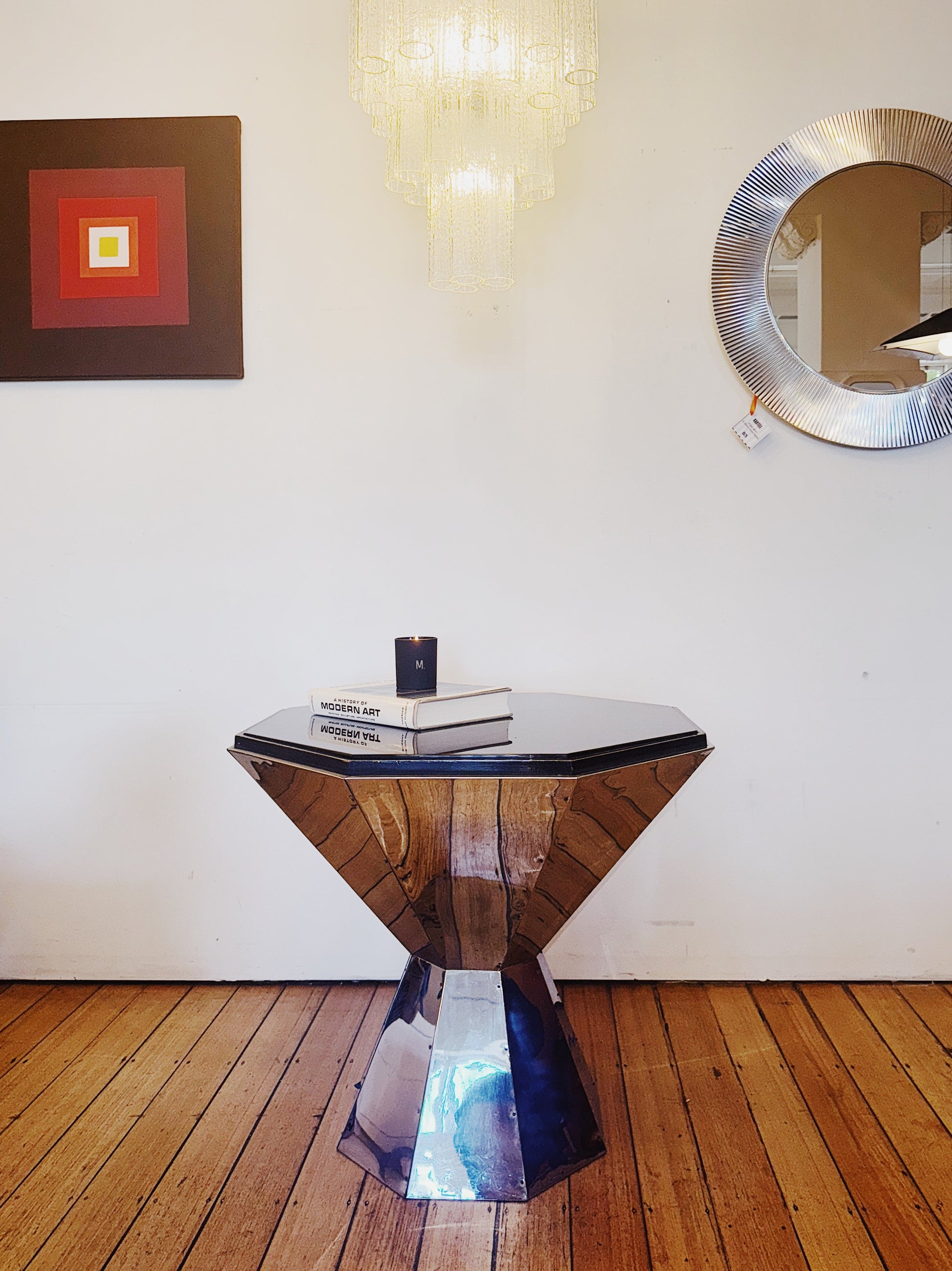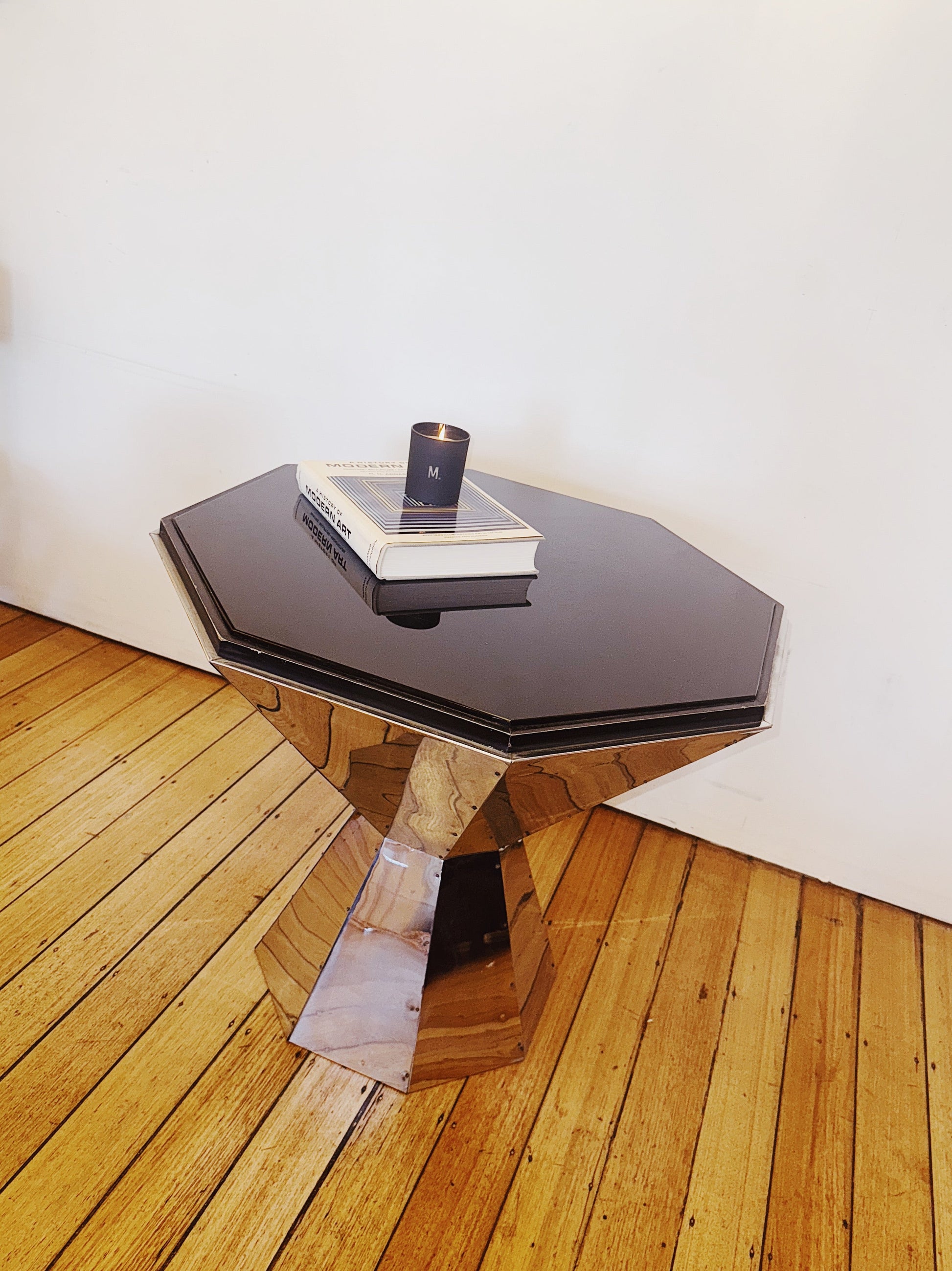 VINTAGE / Tavolo Ottagonale - Chrome, Wood + Black Glass