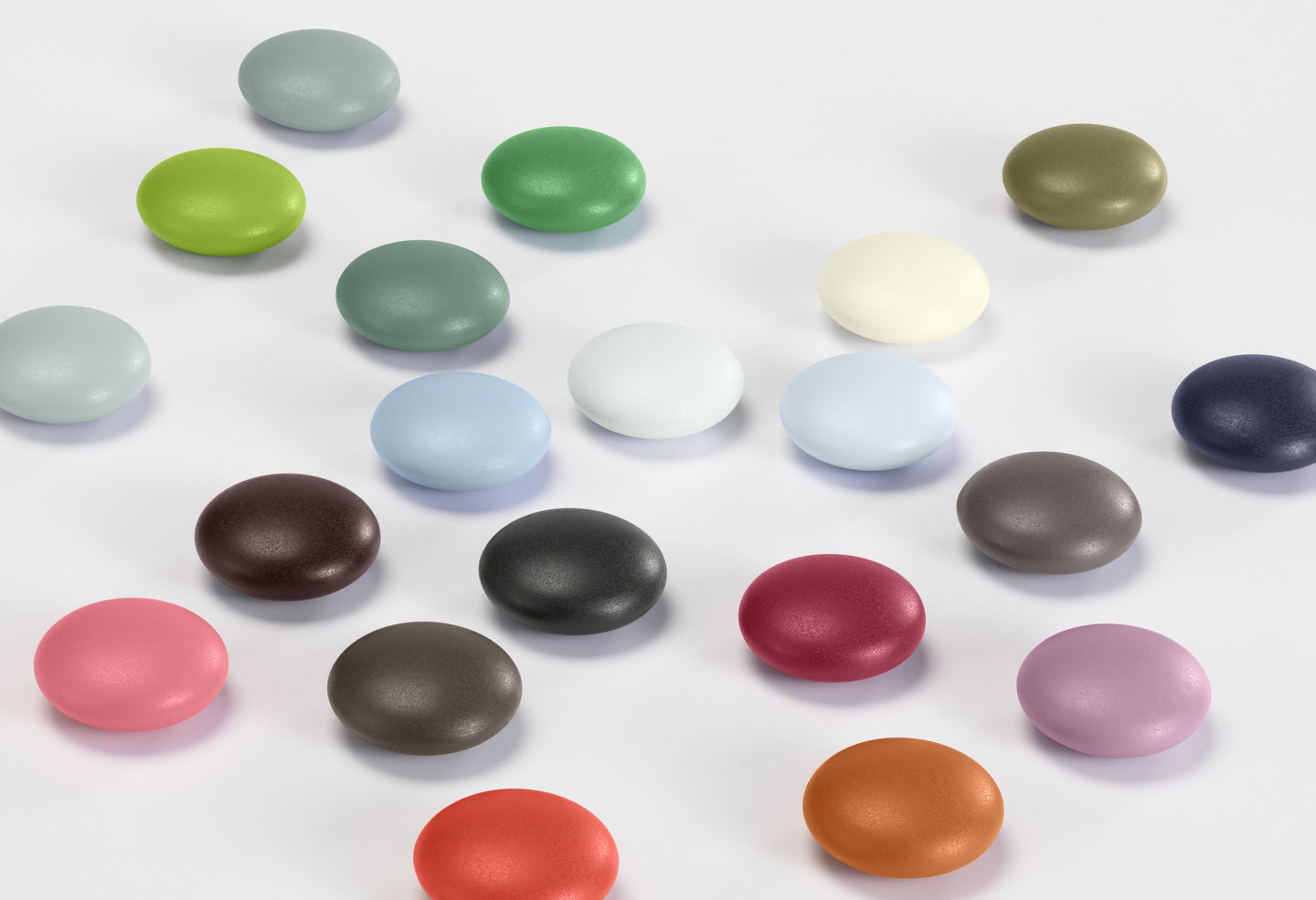 Magnet Dots are reminiscent of pebble stones due to their organically shaped contours. The powerful magnets with robust plastic covers come in three different colour sets, each containing five magnets.