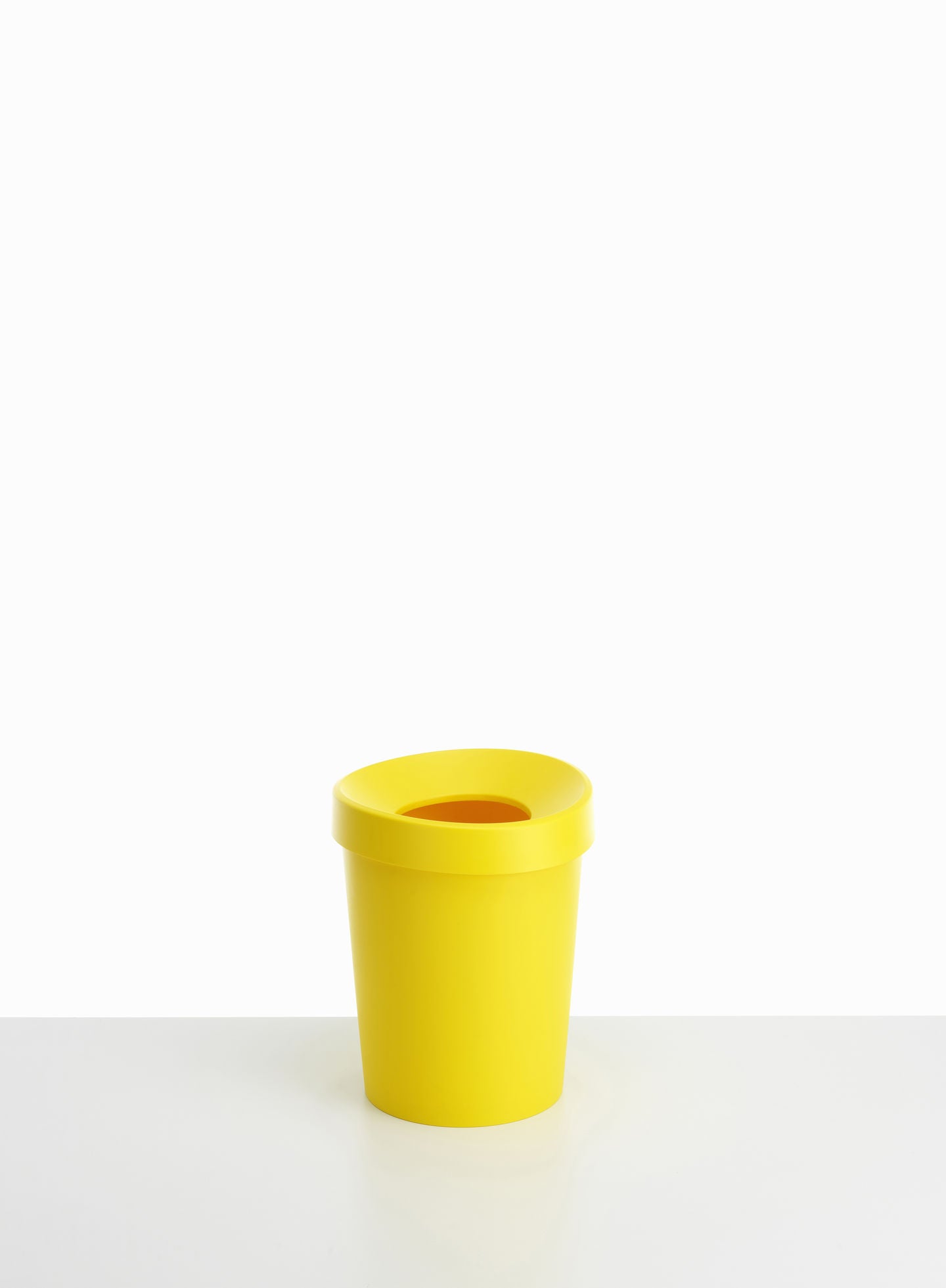 A sculpture by Hans Arp prompted Michel Charlot's design of the Happy Bin. While respecting industrial production methods and material properties, the slightly irregular shape of the waste paper bin was designed to appear almost to have grown naturally.