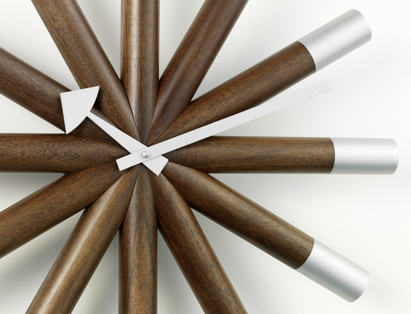 In 1947, the American designer George Nelson was commissioned to create a collection of clocks. Nelson analysed how people used clocks and concluded that they read the time by discerning the relative position of the hands, which made the use of numbers unnecessary. Furthermore, since most people wore wristwatches, he assumed that clocks had become more of a decorative element for interiors.