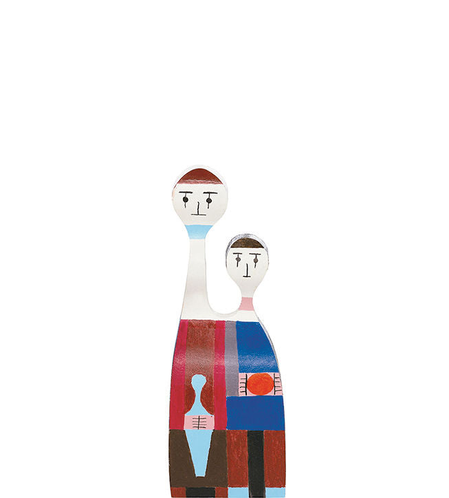 The Wooden Dolls by Alexander Girard are a large family of wooden figures representing human and animal characters. Girard designed them in 1952 for his own use as decorative objects in his Santa Fe home. These originals, which are part of the Girard estate in the holdings of the Vitra Design Museum, served as models for the current re-editions. Precisely replicated down to the last detail, the many different Wooden Dolls are still fabricated and painted by hand today, just like the vintage pieces by Alexander Girard. And even if the differences between them are only very slight: each wooden figure is a unique, individual product, truly one of a kind.